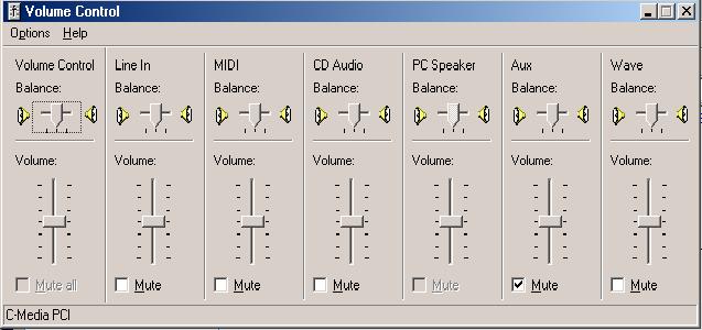 Some shitter sound cards wont let you play say the cd and line in at the same time try muting everything bar, main volume/play control, wave, Line In (if ur running ur sound through your line-in you may be running it through your mic)
