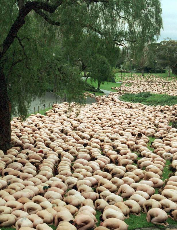 that was in a mag i was readin. apparently summink to do with art? the guys at the mag said to spot the bloke near the front (slightly to the left) who is checkin out the ass in front of him. they also pointed out the woman halfway up the pic who does not seem to realise that everyone else has got their head down. either that or some1 is feeling her up!